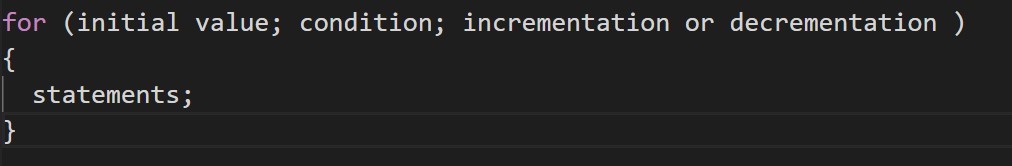 Note: A for loop differs from a while loop in that it specifies how many times the loop will run. In a while loop, the number of iterations is unknown until the program ends the loop when the condition is false.