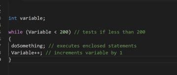 The example that follows checks to see if “Variable” is less than 200 and, if it is, then it executes the statements that are enclosed in brackets. It then loops until “Variable” is no longer less than 200.